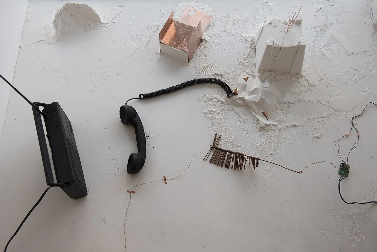 When I snore all my dreams come out, solo show, graphite drawings, flour, radio transmitter, copper, baking paper, moon cake, Penny Contemporary, nipaluna/Hobart, lutruwita/Tasmania, 2018