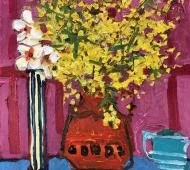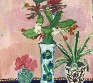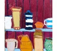 Sophie Witter is inspired by scenes and objects of domesticity. Sophie is driven to paint by the desire to escape into another world; a world where magic and mermaids still exist, a world where she draws on the remembered spaces from her colourful childhood as well as the domestic objects that surround her.